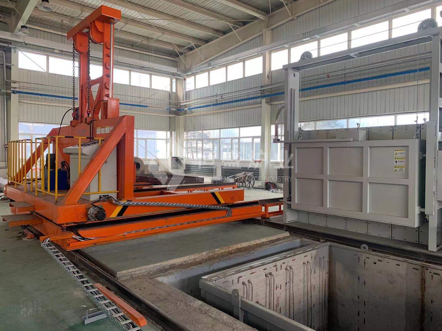20t自動調(diào)制生產(chǎn)線,主要用于海洋鉆井平臺支撐腿半弦管,核電軸熱處理。本生產(chǎn)線由高溫室式加熱爐、低溫回火爐,20t軌道式熱處理機器人,裝、卸料臺淬火槽及攪拌冷卻系統(tǒng)組成。采用PLC自動控制,爐溫均勻性±5℃,淬火轉(zhuǎn)移時間40秒