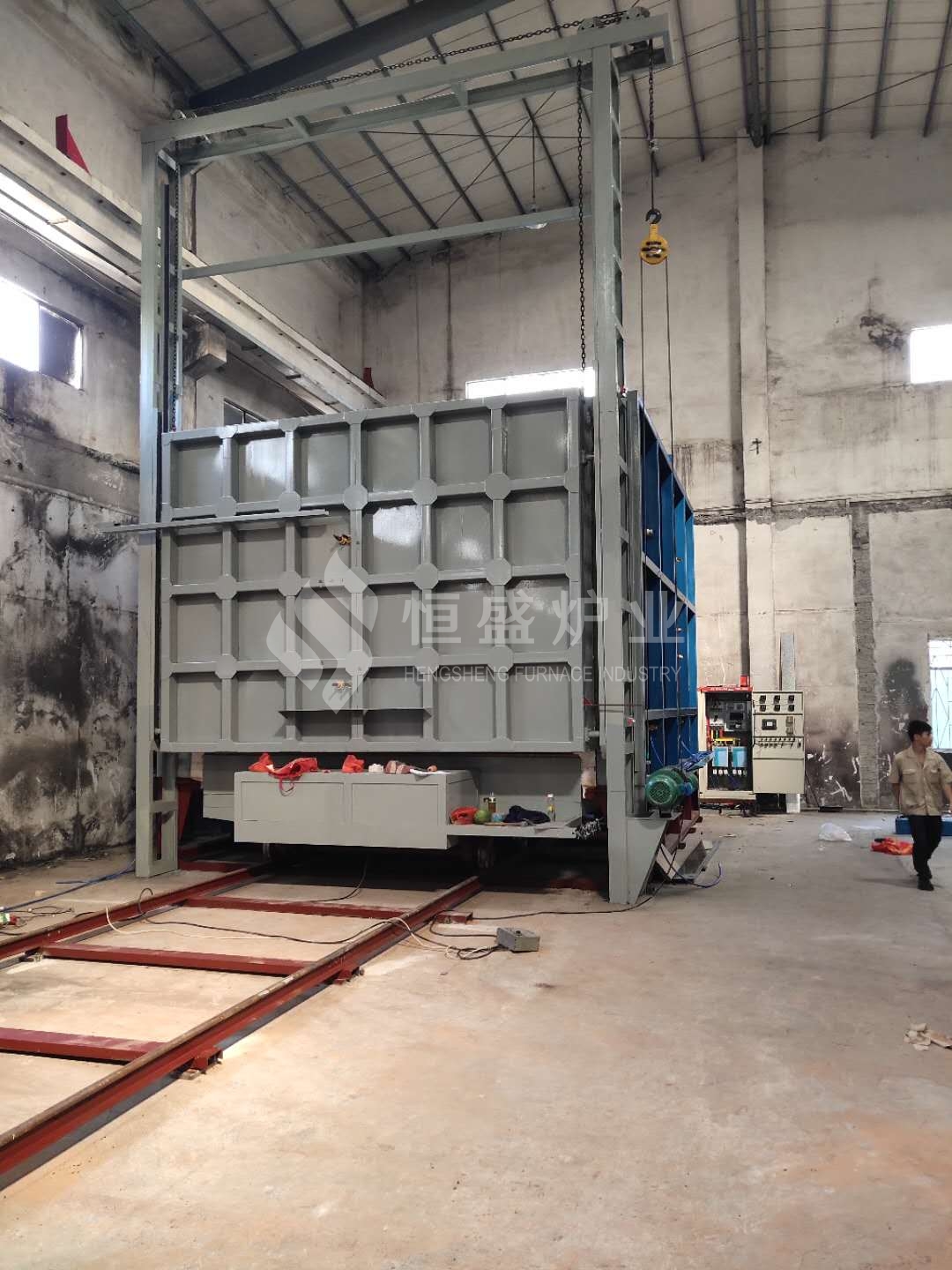 臺車上安裝的耐熱鋼爐底板為承載工件之用,為了防止工件加熱后產生氧化皮通過爐底板的縫隙落入底部加熱元件周圍而造成加熱元件的損壞,需要經常定期保養吹掃臺車爐底板下方的氧化皮,氧化皮吹掃干凈可實現長期使用無故障。